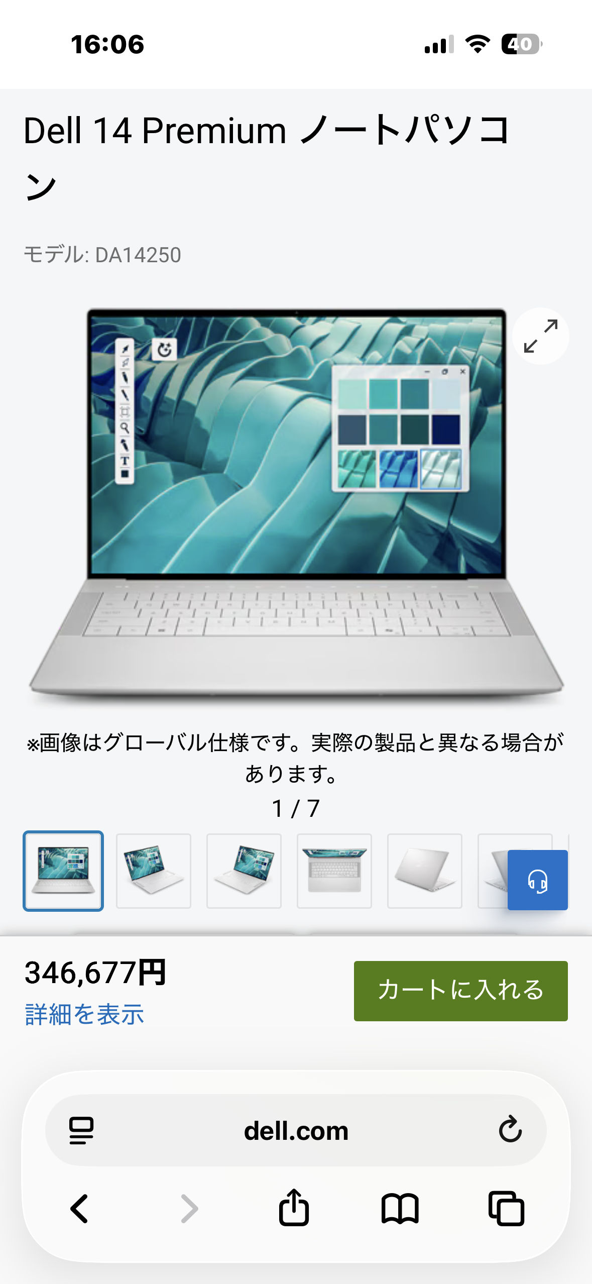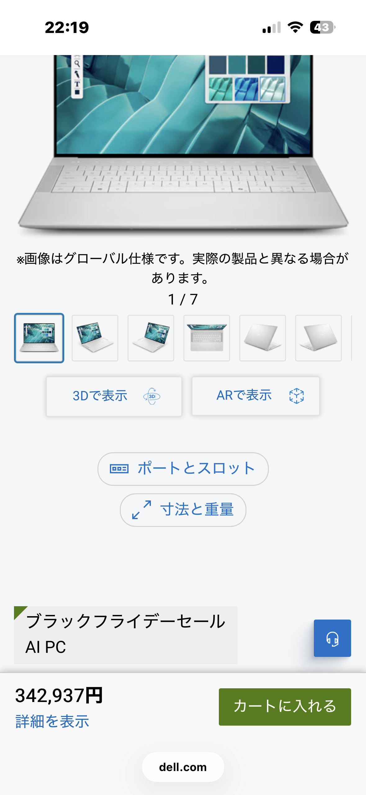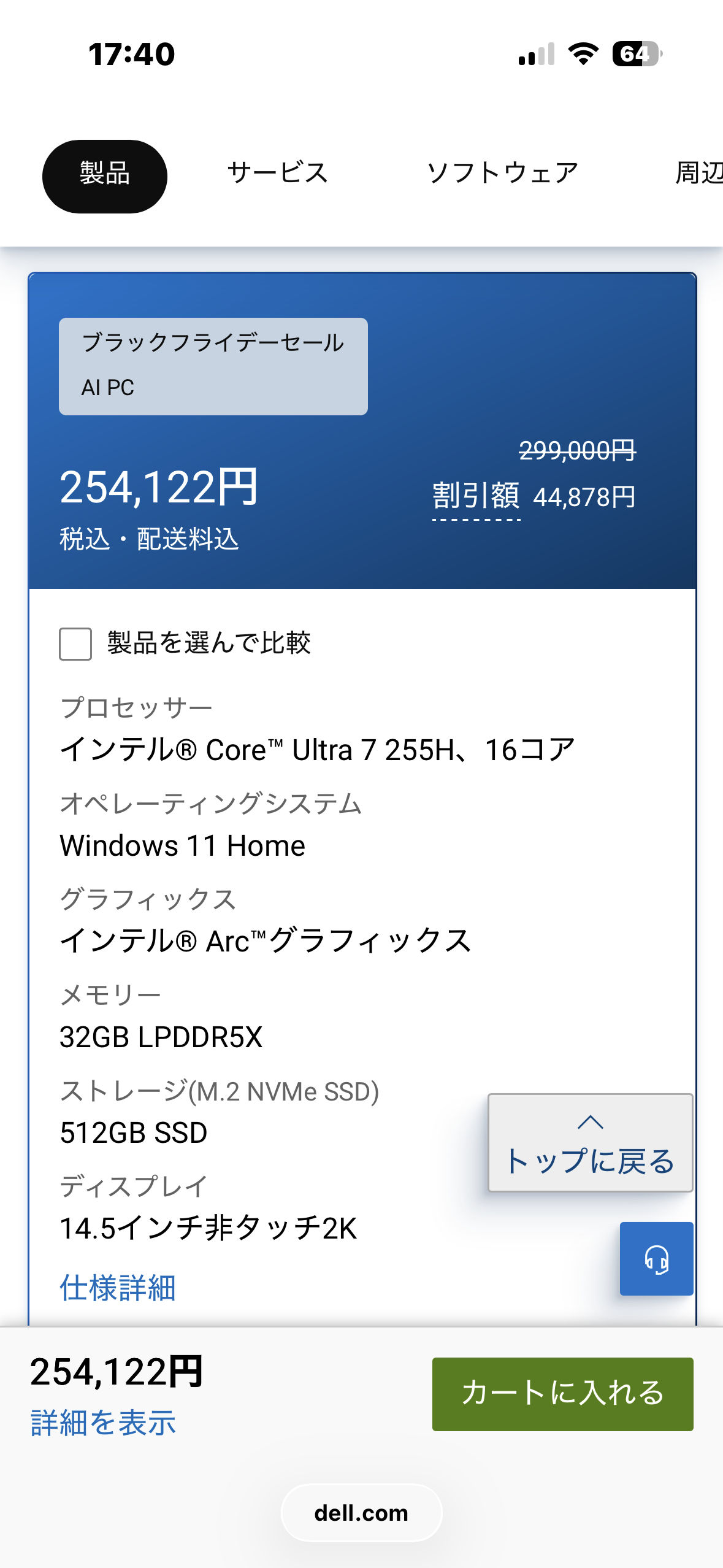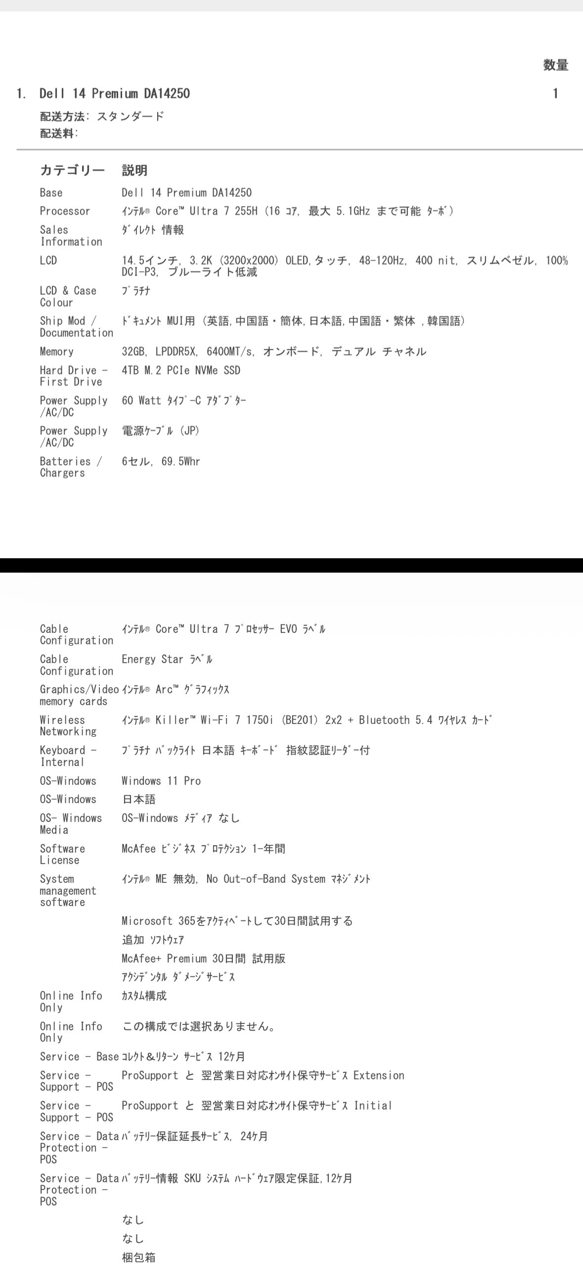 基本構成の Dell 14 Premium PA14250 だと通常なら 299,000 円…つまり ほぼ 30 万なのが, 254,122 円と 4.5 万弱下がっていて, これくらいなら他製品と比べても割高なイメージはありません。 (他メーカーもブラックフライデーなのには目を背けつつ。 (笑)) そこから, 自身の必要とする Windows 11 Pro, 4 TB SSD, 3200x2000 OLED を選択すると, 右画像のとおり 342,937 円となります。 高いのは確かですが, 富士通 FMV BIBLO NUV16X を確か 33 万くらいで買っていた筈なので, 構成を考えれば納得できる範囲です。