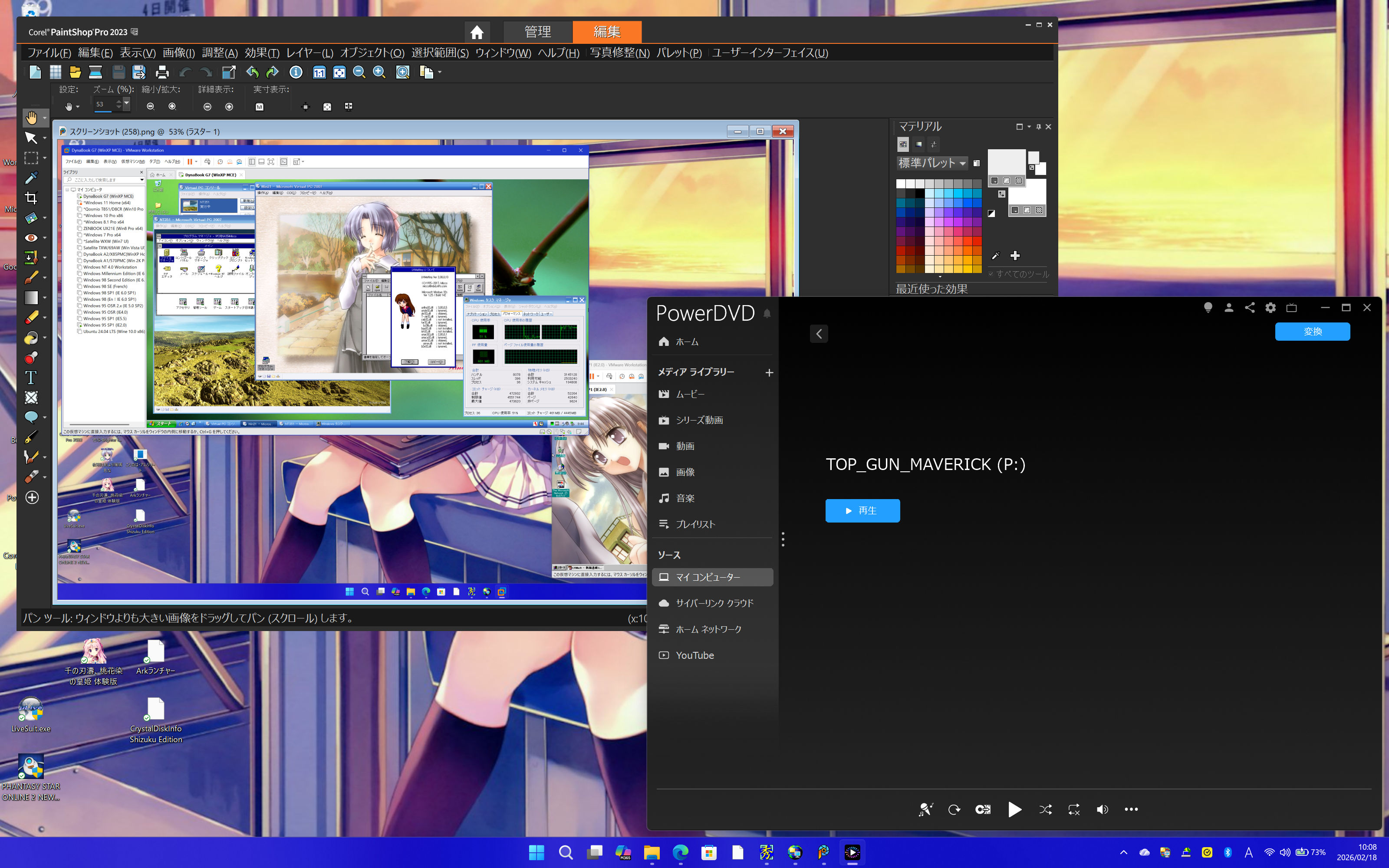 これだけ並べられるのは「さすが 3.2 K」といった感じですね。 右画像でいえば, Windows XP MCE 2002 ゲストの FHD サイズが先代や 3.2 K を選択しなかった場合の解像度ですから, 「高くとも良くぞ こっちを選んだ」と過去の自分を褒めてあげましょう。 (笑)